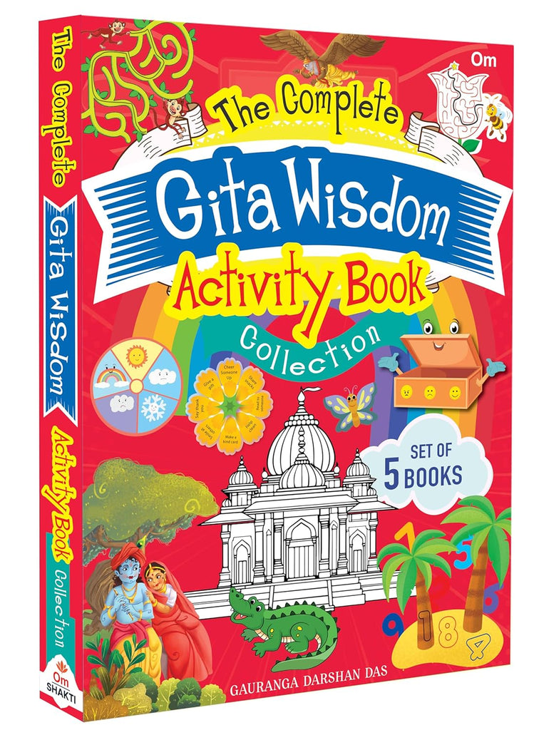 Gita Wisdom Activity - Boxset of 5 Books: Step into the complete Gita Wisdom Activity Book Box Set, the perfect companion to the beloved Gita Wisdom Tales series by Gauranga Darshan Das. This curated 5-book collection offers a blend of puzzles, questions, riddles, reflections, and creative challenges based on the teachings of the Gita. This collection makes ancient wisdom interactive and joyful. Ideal for sparking curiosity, building values, and inspiring self-discovery, this box set turns learning into a meaningful adventure.